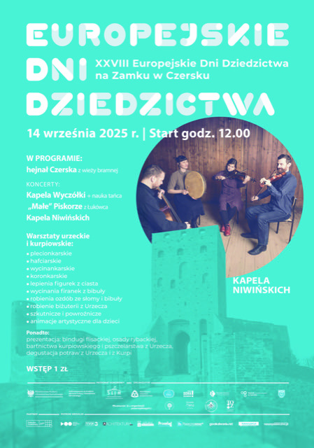 Zapraszamy na XVIII edycję Europejskich Dni Dziedzictwa, która odbędzie się 14 września 2025 r. na Zamku Książąt Mazowieckich w Czersku. Tegoroczna edycja to także Festiwal Tradycyjnych Rzemiosł i Ginących Zawodów. To wyjątkowe spotkanie naszej nadwiślańskiej tradycji Urzecza, z tradycją kurpiowską. Twórcy ludowi z Urzecza i Kurpi pokażą zarówno podobieństwa, jak i różnice naszych regionów.